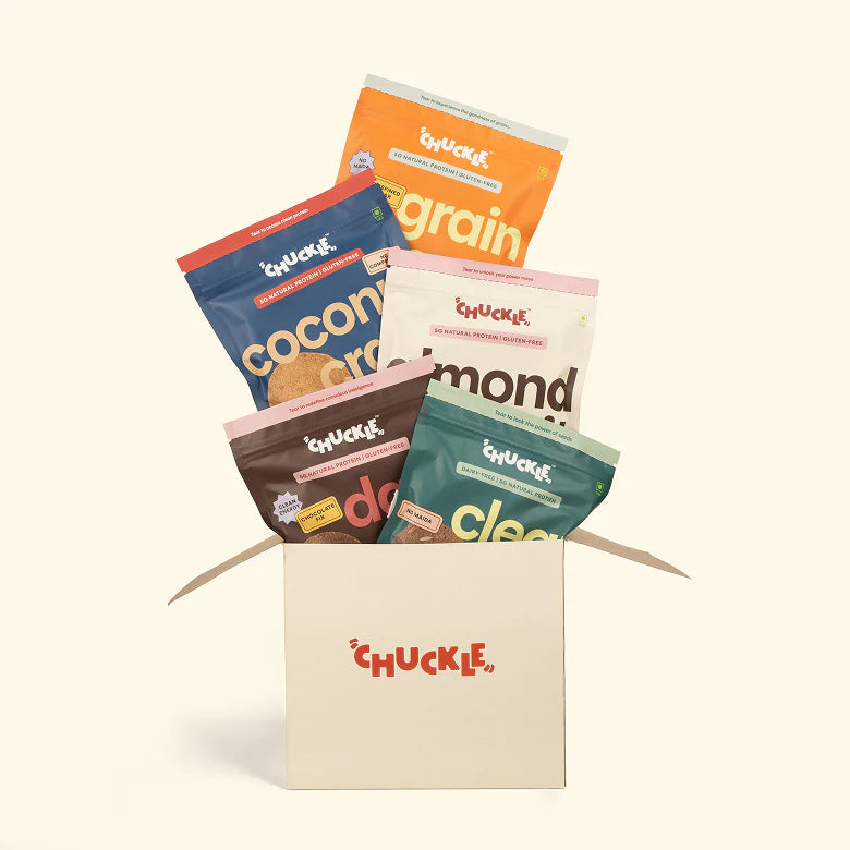 "We started Chuckle because snacks forgot how to be fun. Somewhere between “high protein” and “0% joy”, the real snacking experience got lost. So we built a brand that brings it back — bold flavours, clean ingredients, zero guilt. Chuckle = Real Snacks. Real Joy. 100% Gluten-Free. Every cookie is a rebellion against boring bites. And this box? It’s your way of saying, “I choose joy.” 🍪✨"